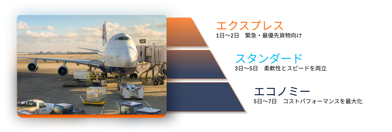 お客様のニーズに応じた柔軟な航空貨物オプションで、効率的かつスムーズな輸送を実現します。